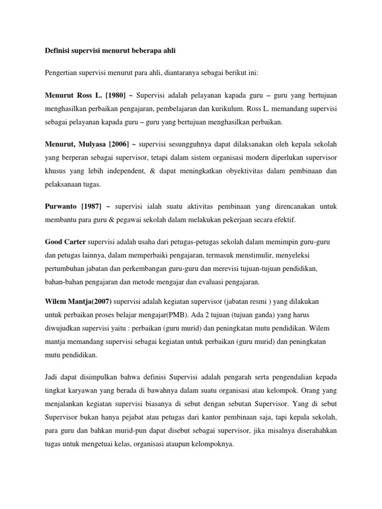 Definisi Supervisi Menurut Beberapa Ahli Pdf