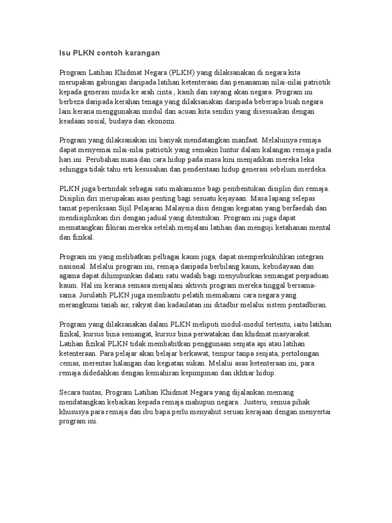 Isu Plkn Contoh Karangan Pdf